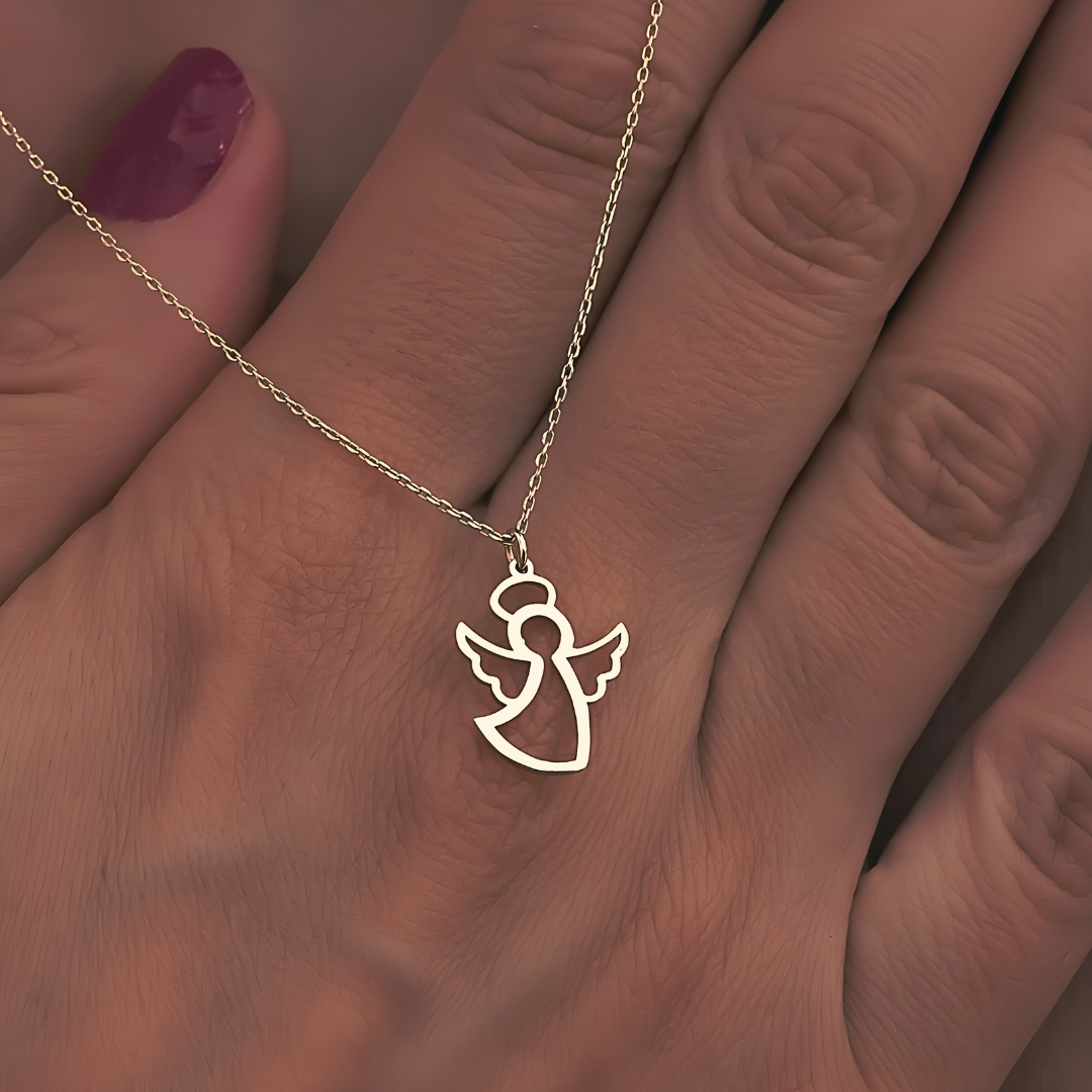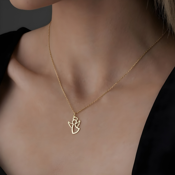 This elegant angel pendant is crafted with high-quality materials and shaped into a minimalist, open-outline design that feels both modern and meaningful. Its smooth finish and delicate form make it a versatile accessory that can be worn every day, offering a subtle reminder of guidance, hope, and comfort. Lightweight yet refined, it sits beautifully on the neckline, enhancing any outfit with a touch of serenity and timeless charm.